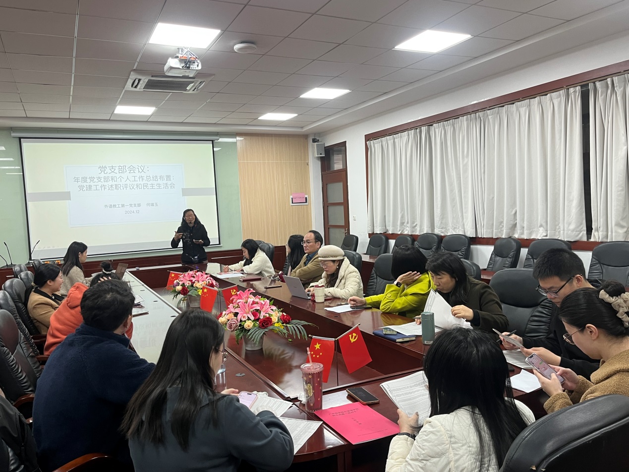 为回顾和总结过去一年党支部在各项工作中的成绩与经验,分析存在的问题与不足,更好地规划和部署下学期的党建工作,12月25日,外国语学院教工第一党支部在第二行政楼308会议室举行了年度工作总结大会。本次会议由支部书记何瑞玉主持。