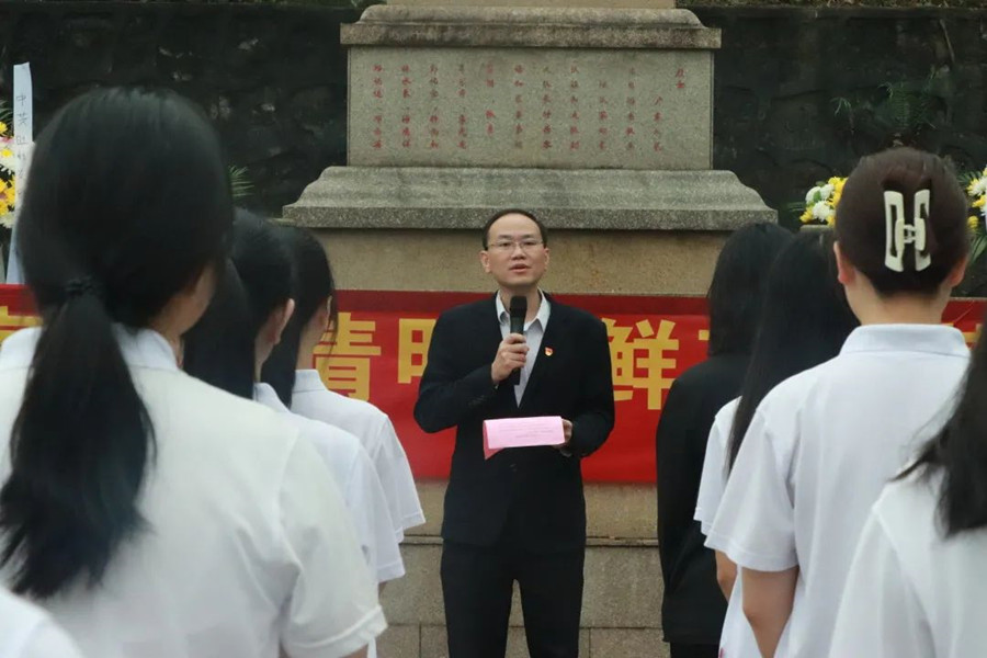 徐超在革命烈士纪念碑前做总结发言。他希望我们要继承革命先烈们的光辉意志,坚定理想信念,练就过硬本领,勇于创新创造,矢志艰苦奋斗,锤炼高尚品格,为实现中华民族伟大复兴的中国梦做出我们应有的贡献。